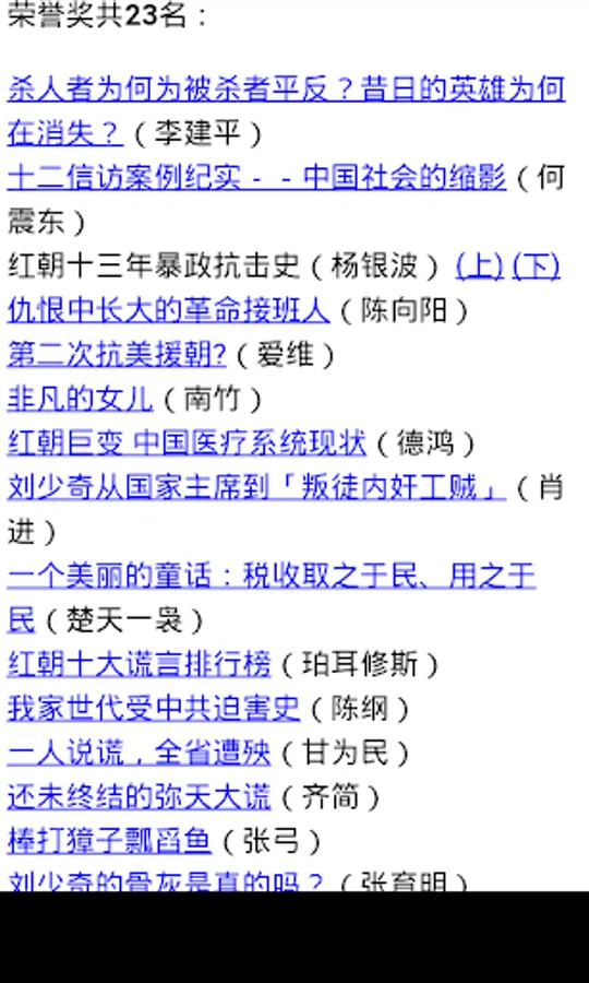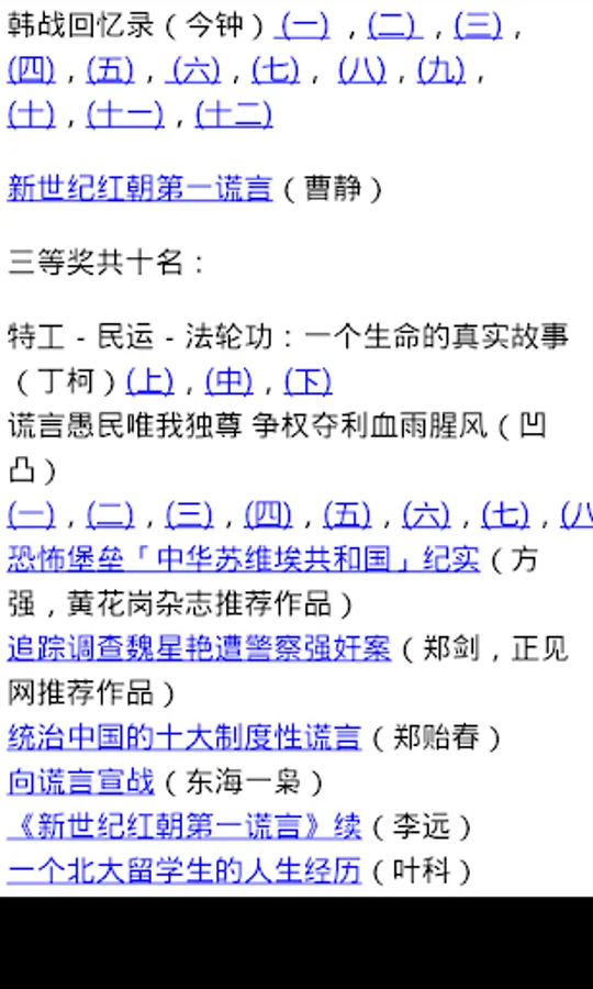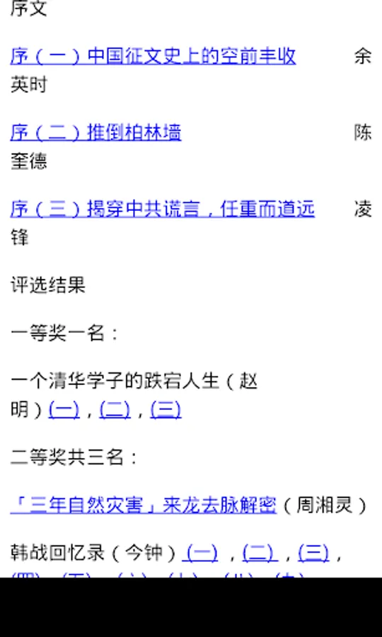 评委会诸公鉴于征文道德文化高义,不吝心智,付出巨量时间与精力,经反覆比量,苦为斟酌,粹中拔粹,优中选优,辛苦珍选出数十获奖作品汇编成册名为《红朝谎言录》。