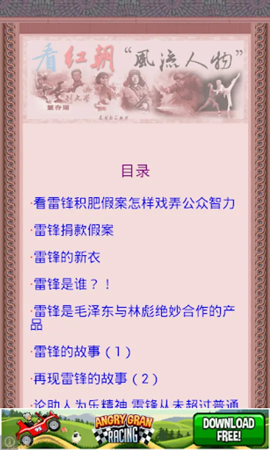 《看红朝风流人物》:雷锋真相内幕、黄继光真相内幕、刘文彩真相内幕以及