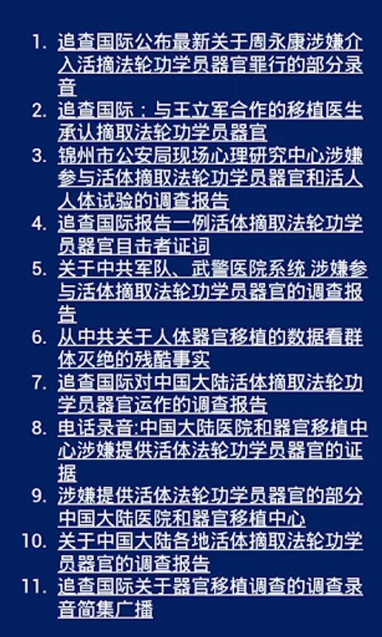 11. 追查国际关于器官移植调查的调查录音简集广播