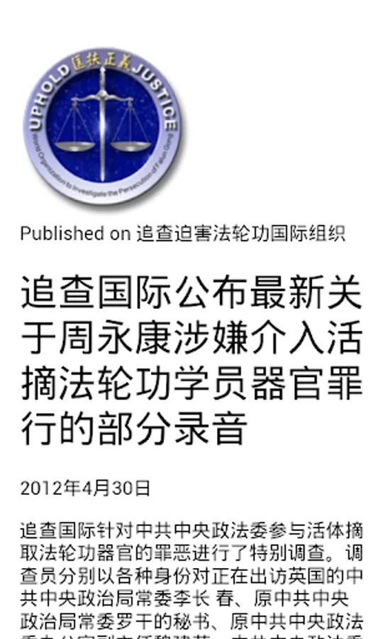 1. 追查国际公布最新关于周永康涉嫌介入活摘法轮功学员器官罪行的部分录音