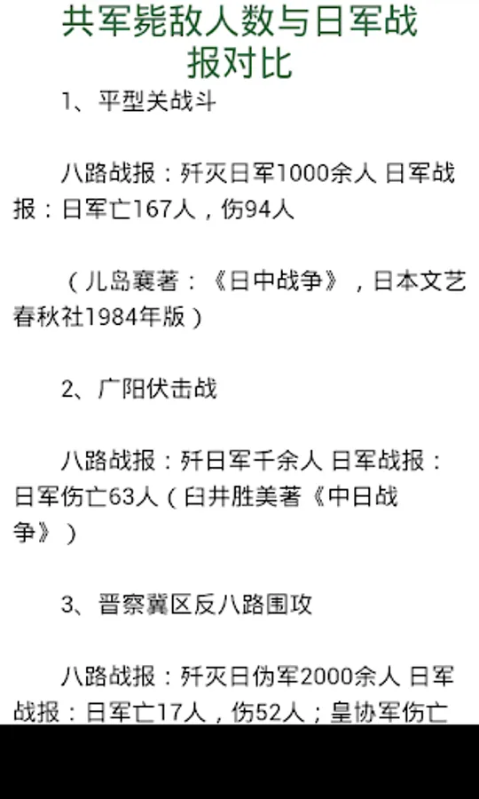共军毙敌人数与日军战报对比
