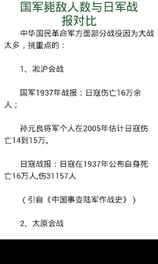 国军毙敌人数与日军战报对比