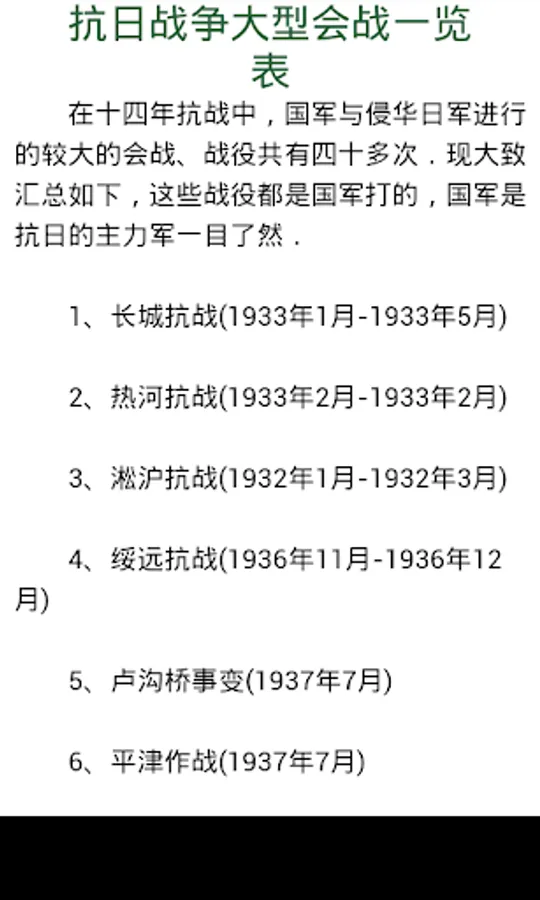 抗日战争大型会战一览表