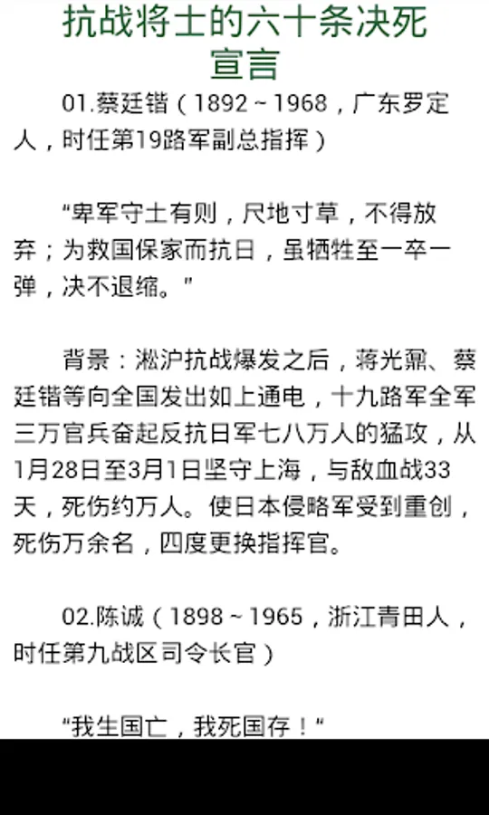 抗战将士的六十条决死宣言