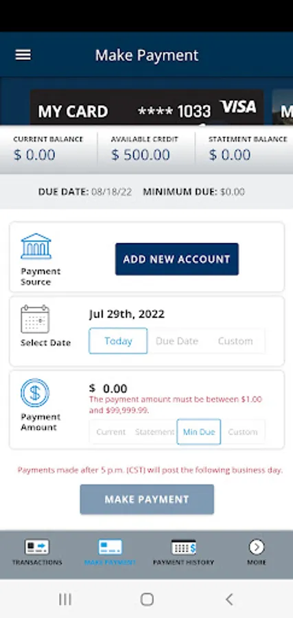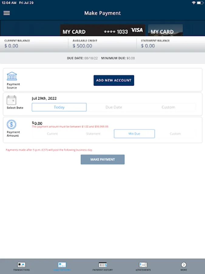 • Make a payment to your cards