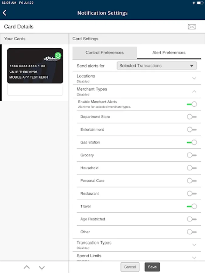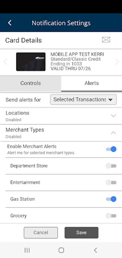 • Keep informed by setting alerts on card activity