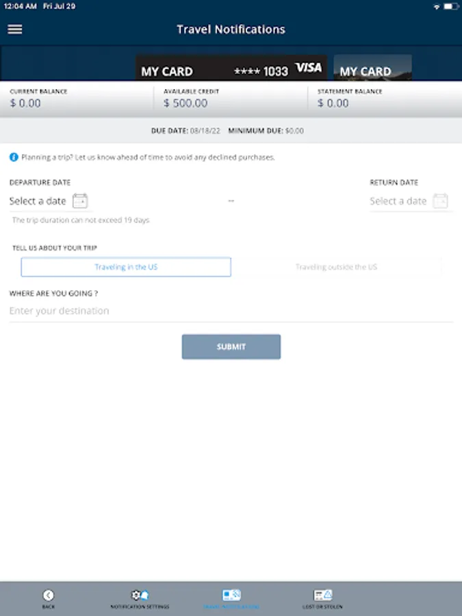 • Travel notices when you’re out of town on business or vacation