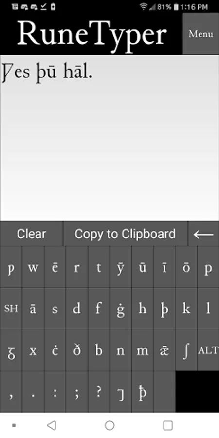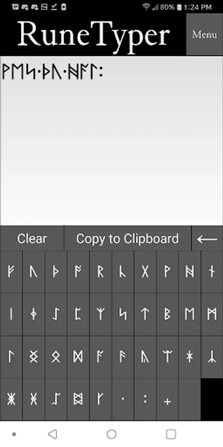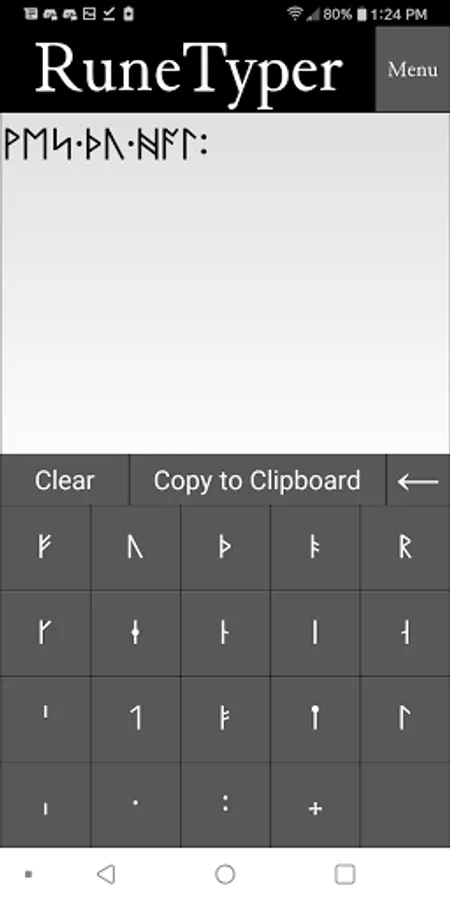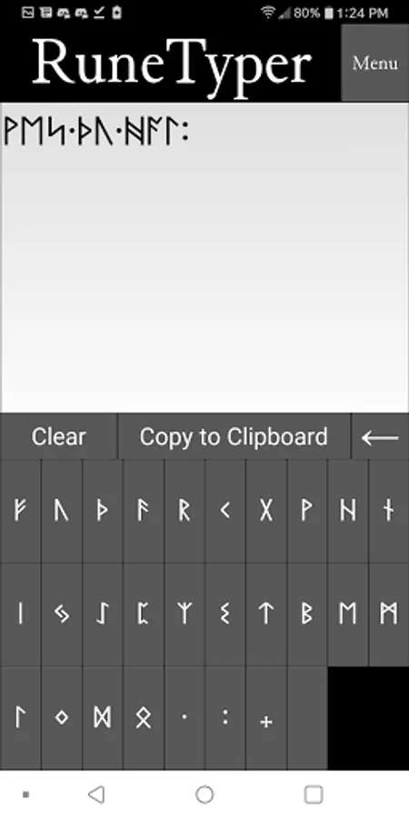 This app allows you to type in runes. You can copy the text to your phone's clipboard, and then paste it into other apps for use there.