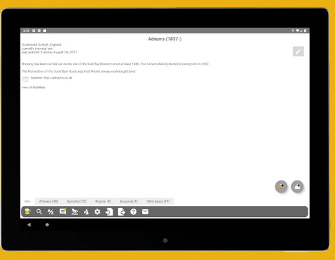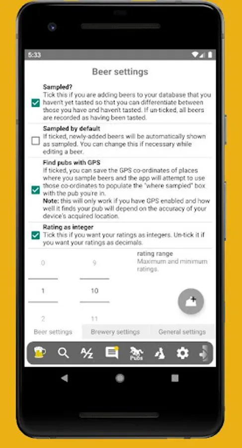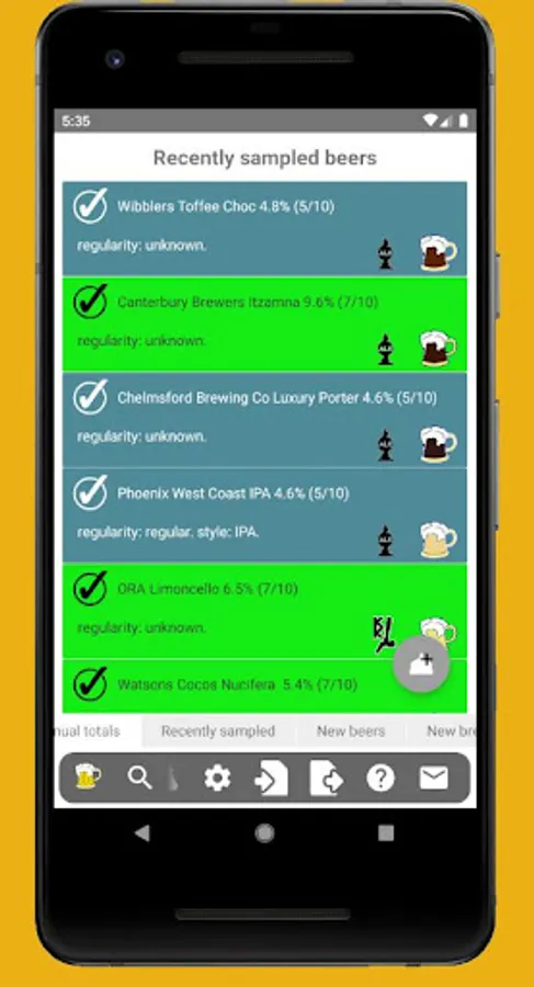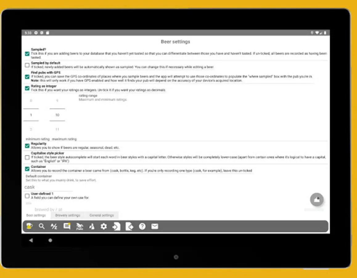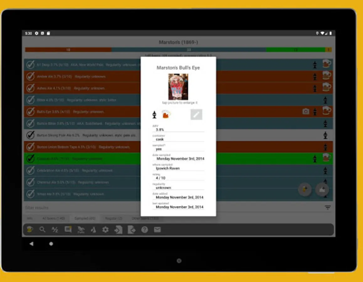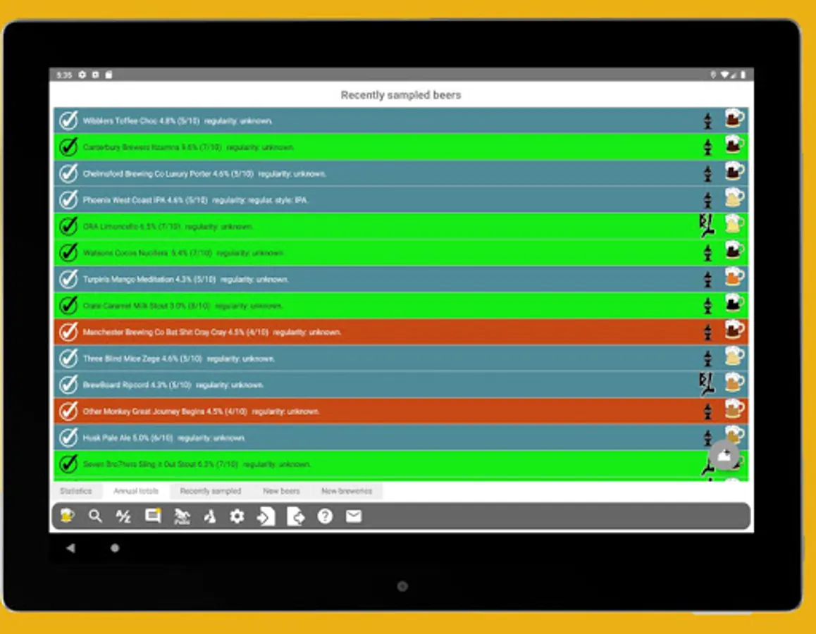 You can record as little or as much as you like about the beers you've sampled; at the most basic, all you need to do is record the brewery name and the beer name, but you can also record many different things about your beers, such as ABV, your personal rating, the colour, how it was dispensed, where you sampled it (pubs' GPS locations can be remembered to automatically set the "where sampled" field) and many many more pieces of information.