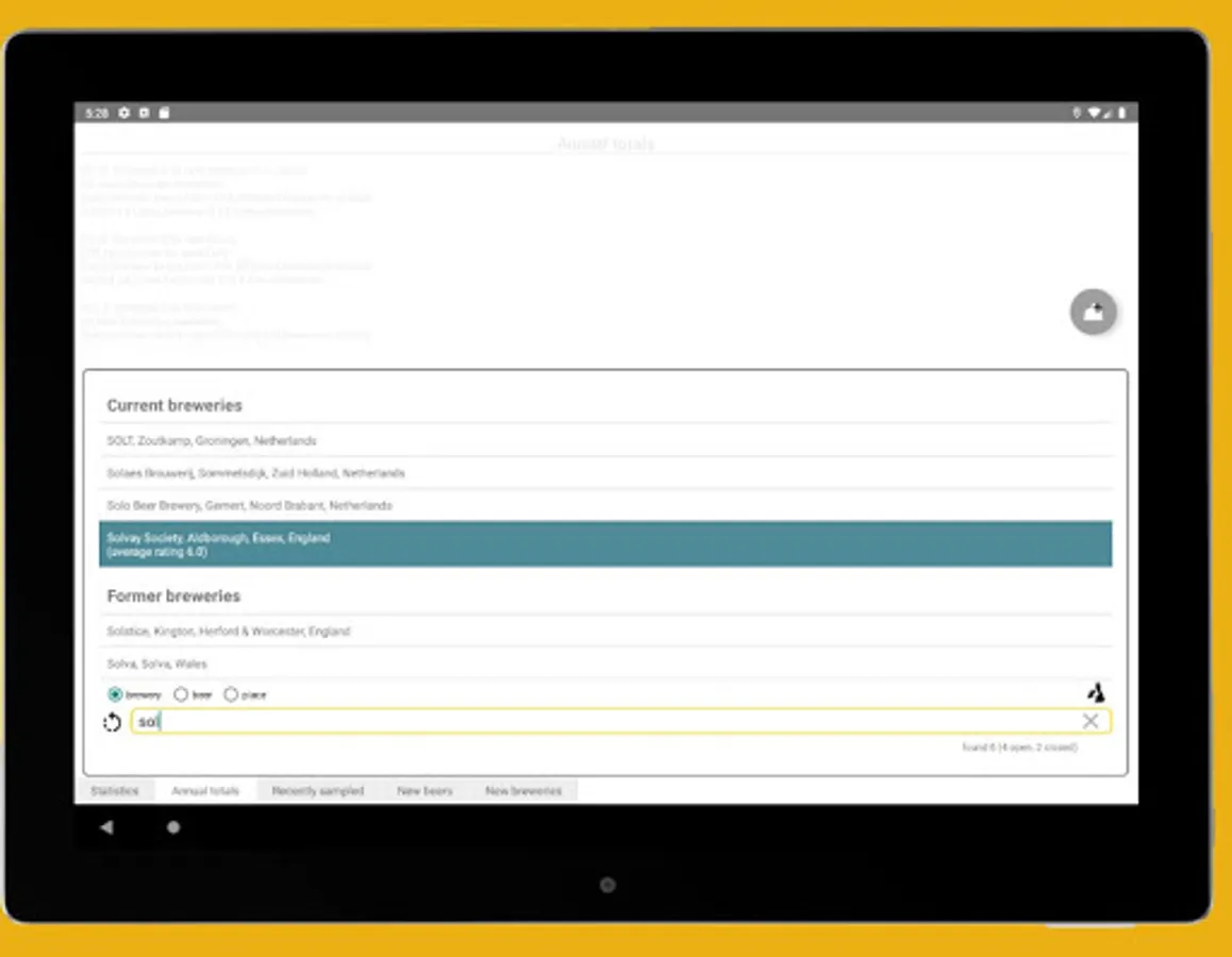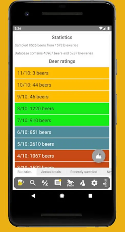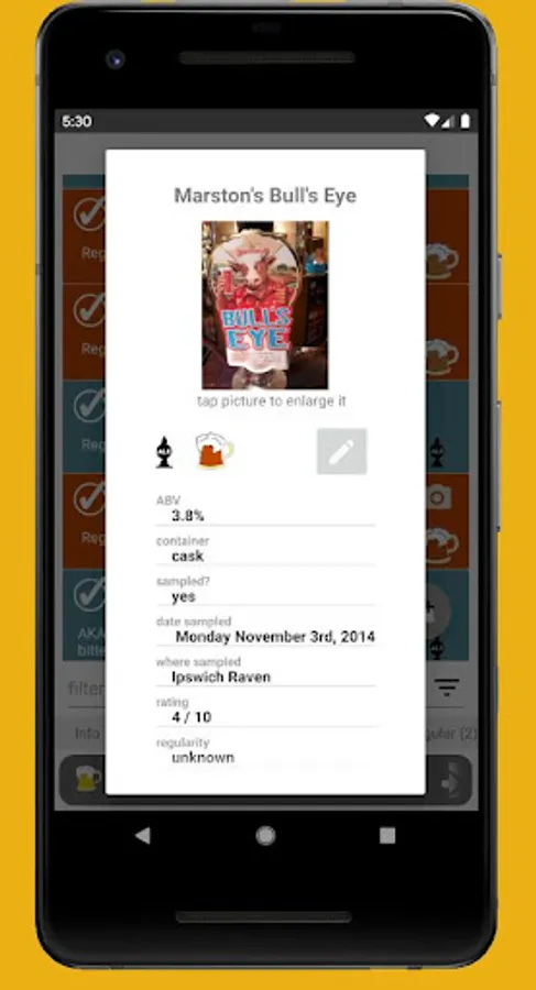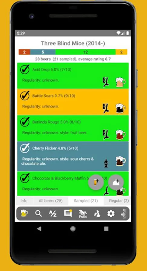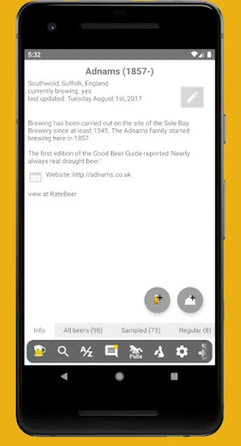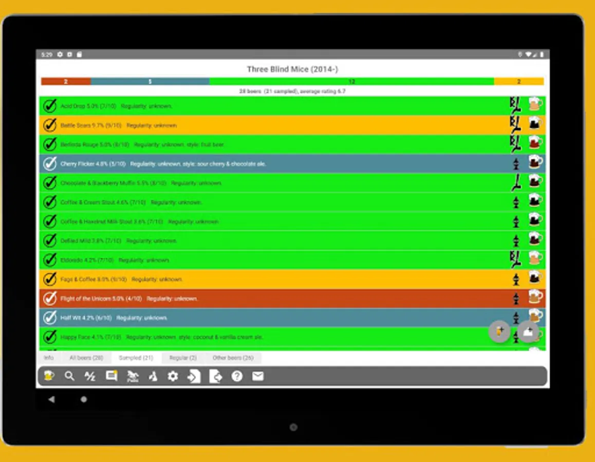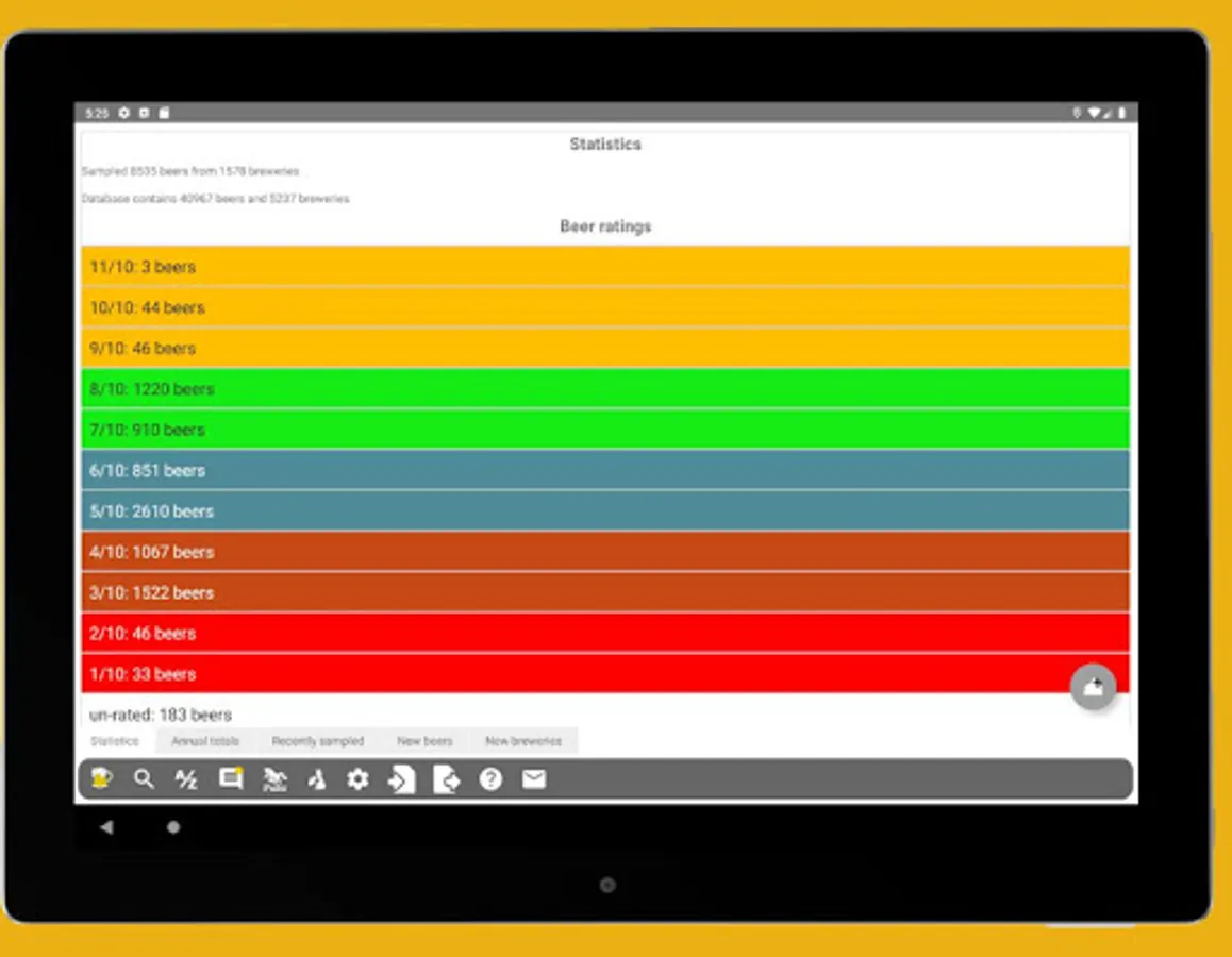 You can record as little or as much as you like about the beers you've sampled; at the most basic, all you need to do is record the brewery name and the beer name, but you can also record many different things about your beers, such as ABV, your personal rating, the colour, how it was dispensed, where you sampled it (pubs' GPS locations can be remembered to automatically set the "where sampled" field) and many many more pieces of information.