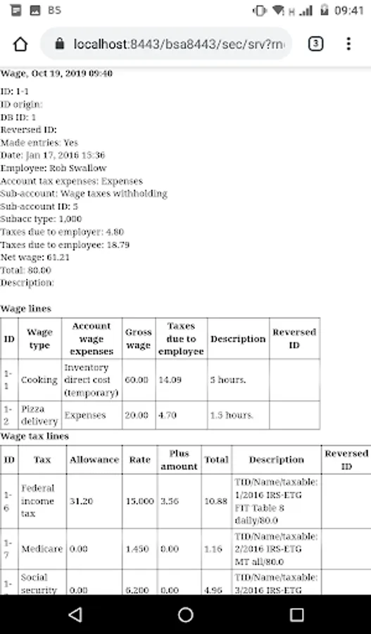 * Payroll - automatic calculation of the taxes using withholding tax tables.