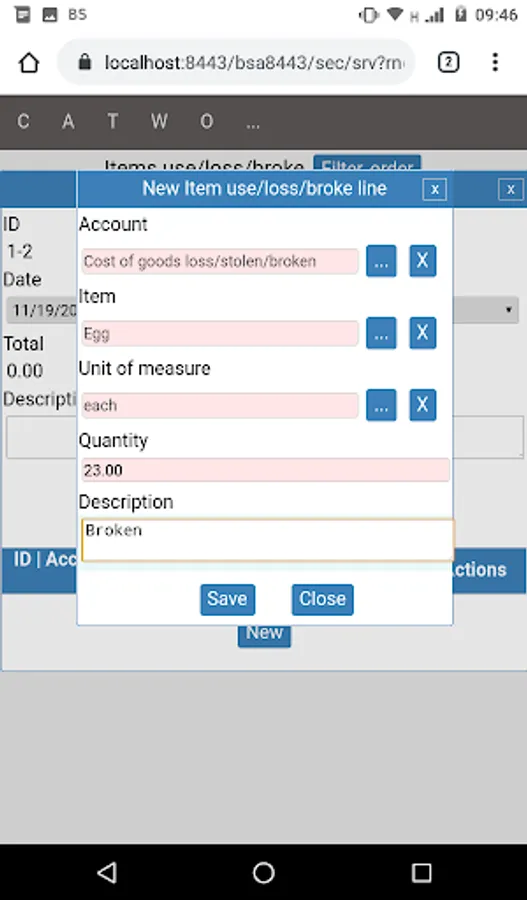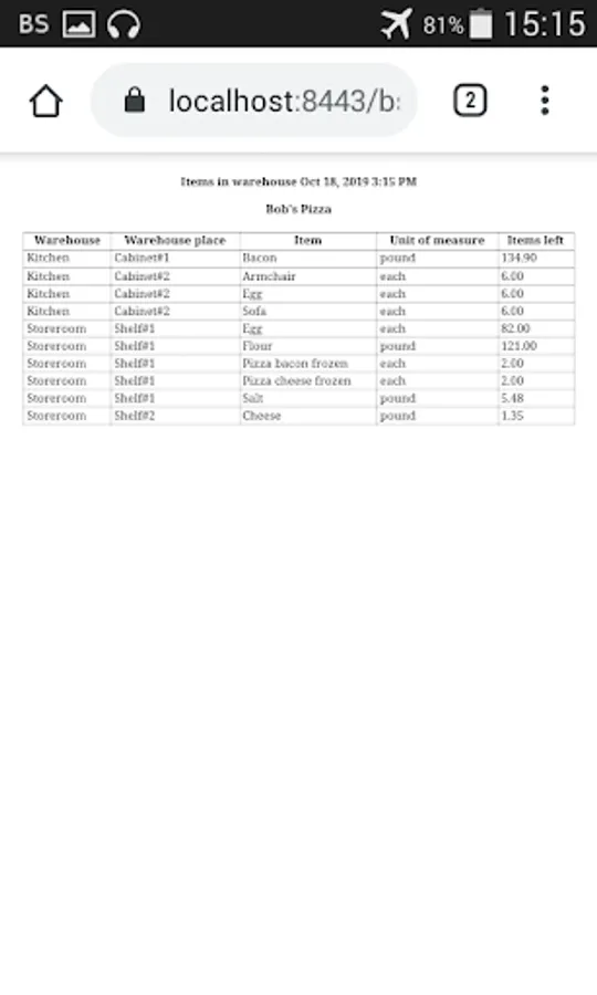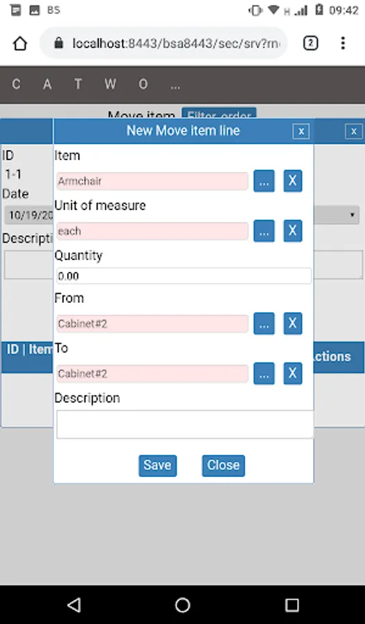* Inventory - three dimensional (warehouse, place, unit of measurement) registration, moving items inside warehouse, etc.