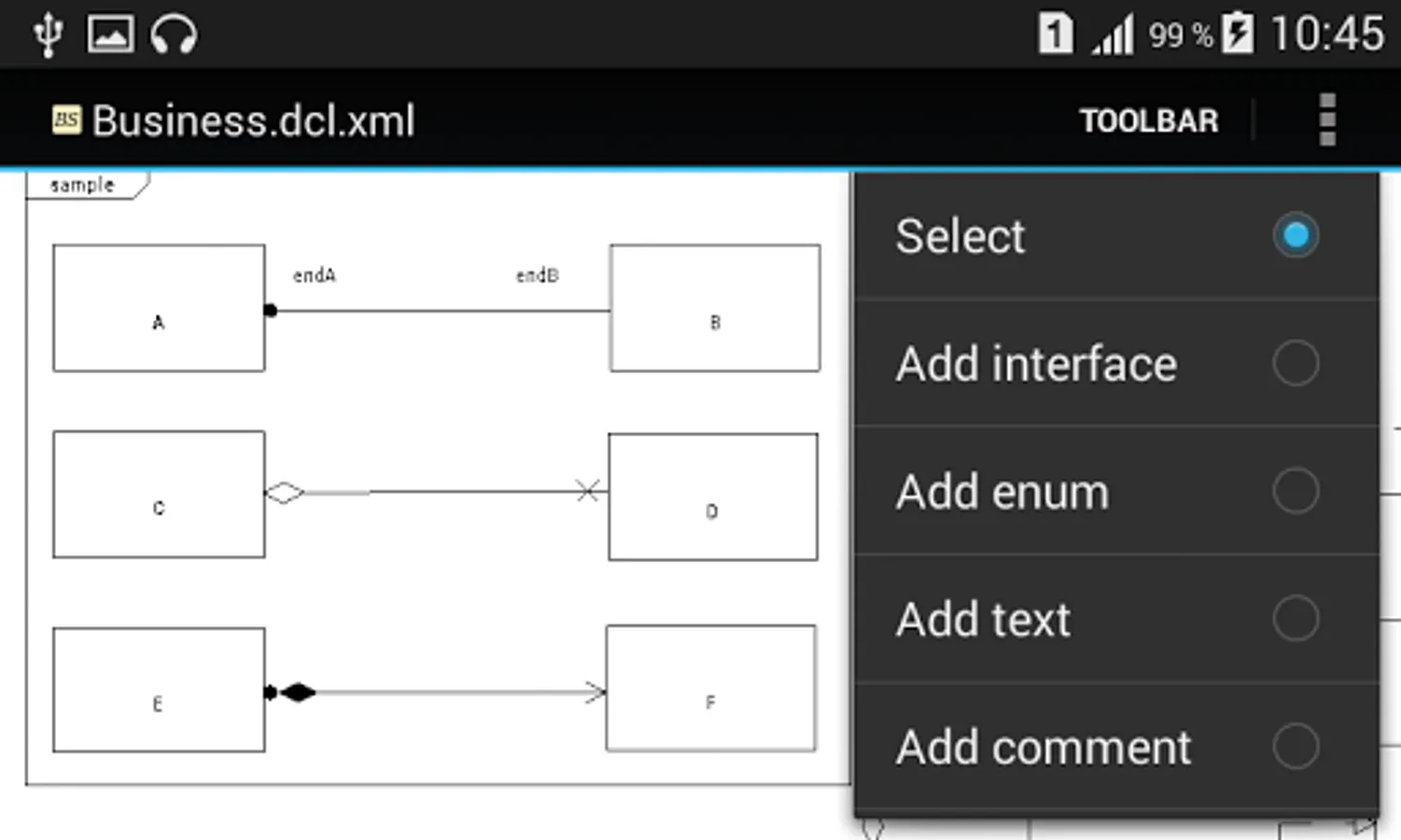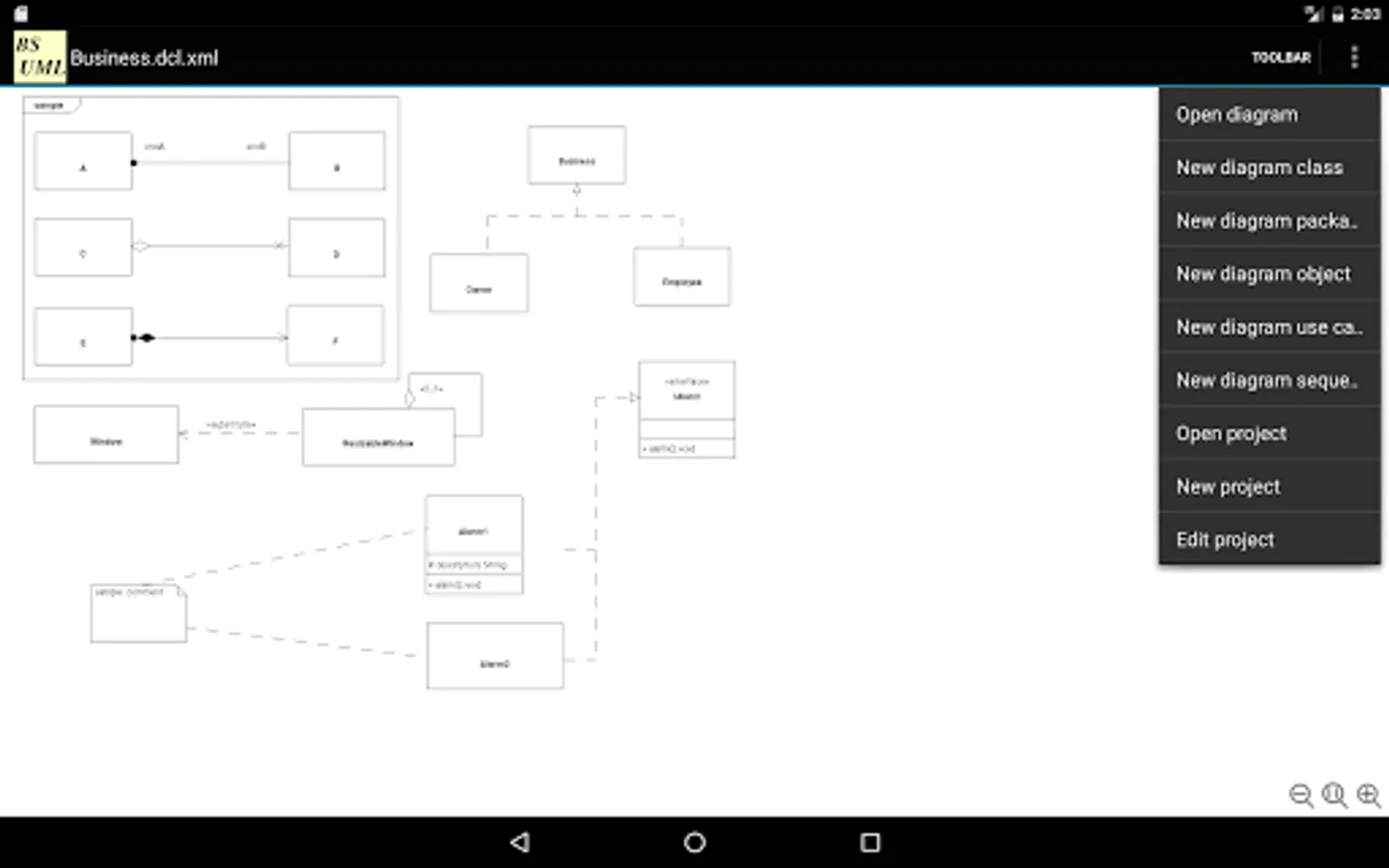 Beige-UML is a free, open source UML diagram editor. It has two user interfaces - standard desktop SWING one and Android one.