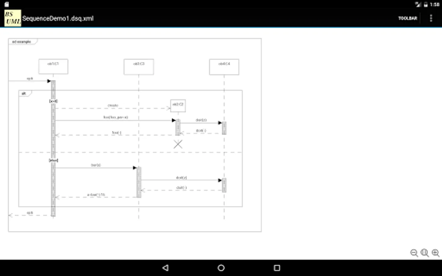 * It supports UML 2.4.1 compliant class diagram, package diagram, object diagram, sequence diagram and use case diagram.