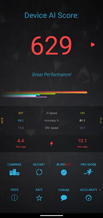 Note: Hardware acceleration is supported on all mobile SoCs with dedicated NPUs and AI accelerators, including Qualcomm Snapdragon, HiSilicon Kirin, Samsung Exynos , MediaTek Helio / Dimensity and UNISOC Tiger chipsets. Starting from AI Benchmark v4, one can also enable GPU-based AI acceleration on older devices in the settings ("Accelerate" -> "Enable GPU Acceleration", OpenGL ES-3.0+ is required).