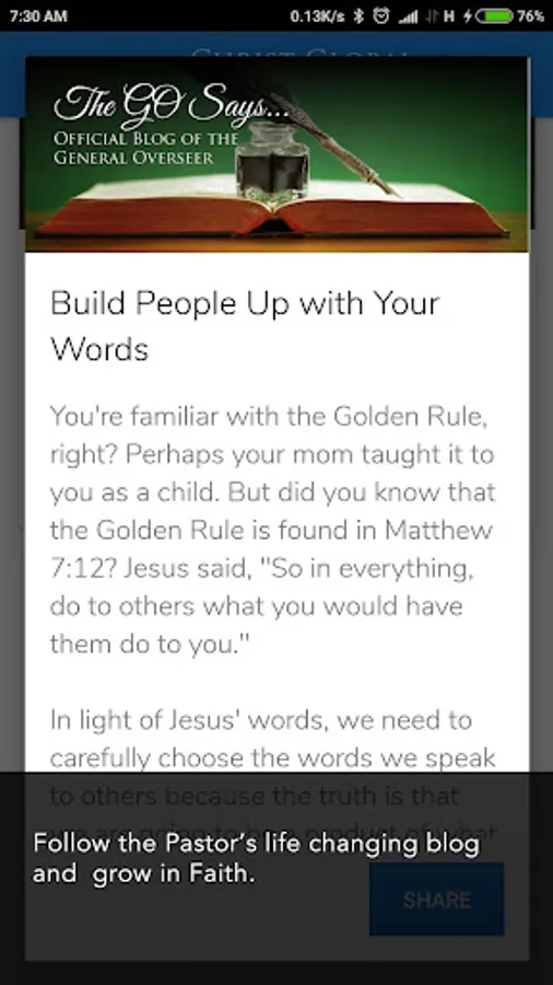 Join us as we journey through life with Christ. View our services, enjoy prayers and a Word of the Moment plus other Holy Spirit inspired content from the stables of CGAM. Remain Blessed.
