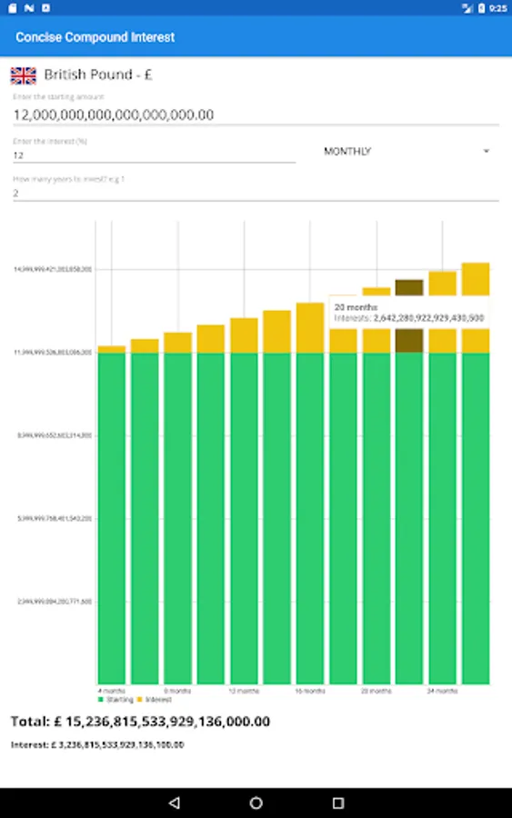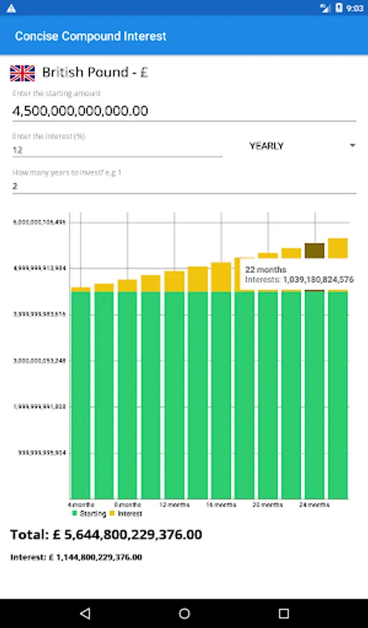 Concise Compound Interest calculator makes calculating compound interest a breeze. In a few steps and all from one screen you get all the compound interest information needed.