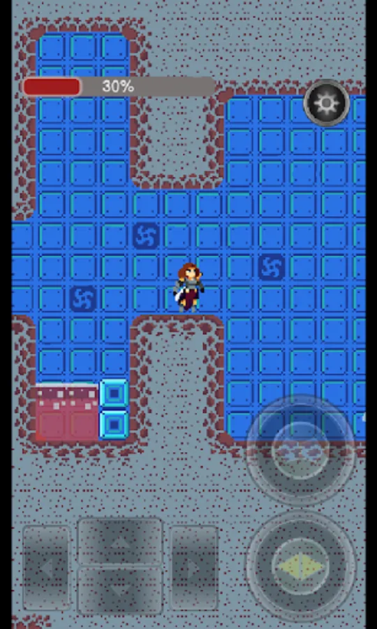 usa los botones de arriba y abajo para subir y bajar escaleras, botones de recorrido adelante y atras, mas salto y golpe.
