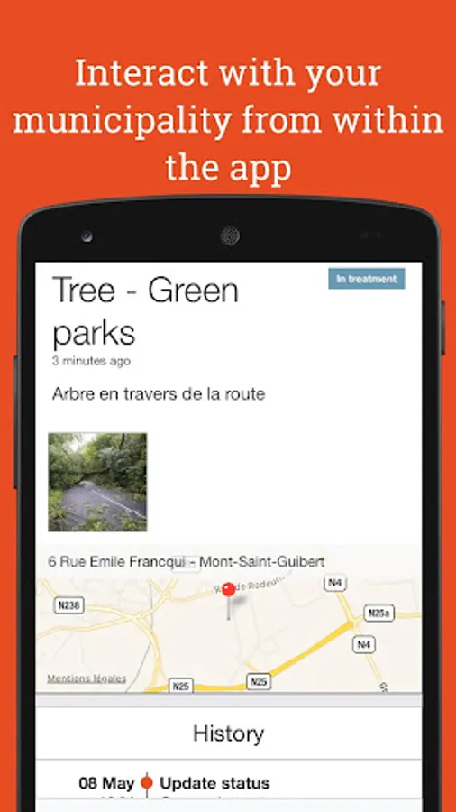 Your municipality will be automatically notified about the issue or the suggestion you posted. At every status update, you can be notified how your issue or suggestion is being treated by the municipality.