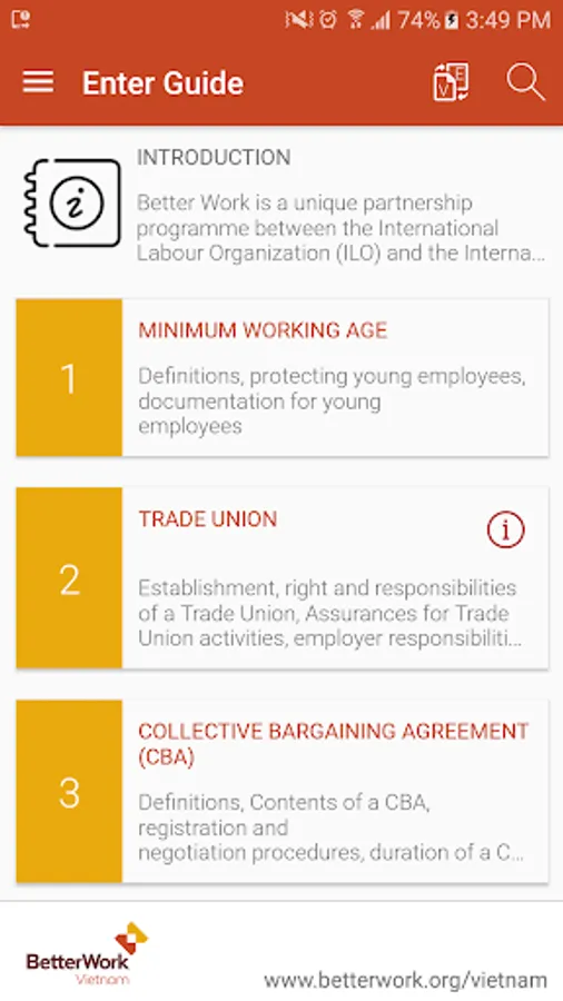 The Guide covers all major areas of the Labour Law, including those on Trade Unions and Social Insurance, governmental regulations, international labour standards that have been ratified by Vietnam, and the Vietnamese Constitution.