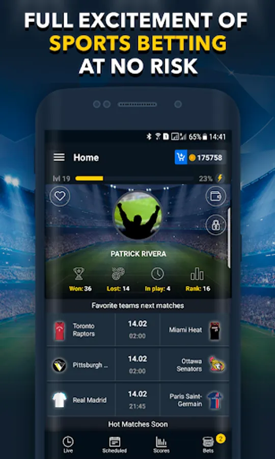 When you sign up into the game, you are awarded 1000 bet coins that help you place bets when playing. Virtual currency enables you to understand the world of betting without the risk. Bet on World Cup live games and enjoy the thrill of football. The app takes you on a tour of wagering before you begin betting. You don't need to have prior knowledge of gambling for you to enjoy the game.