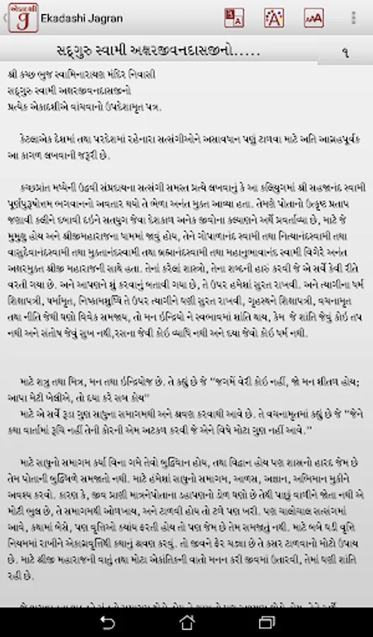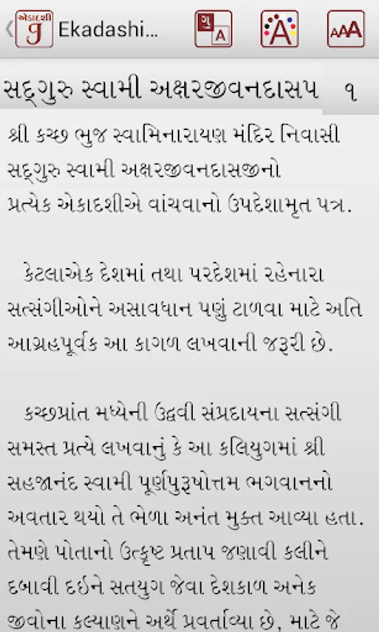 - Ekadashi Patra (Letter) by Swami Shree Aksharjivan Dasji