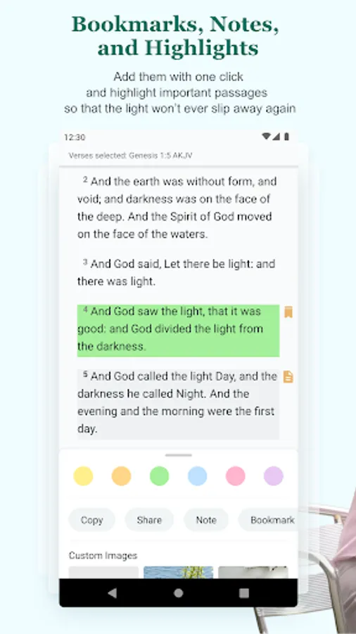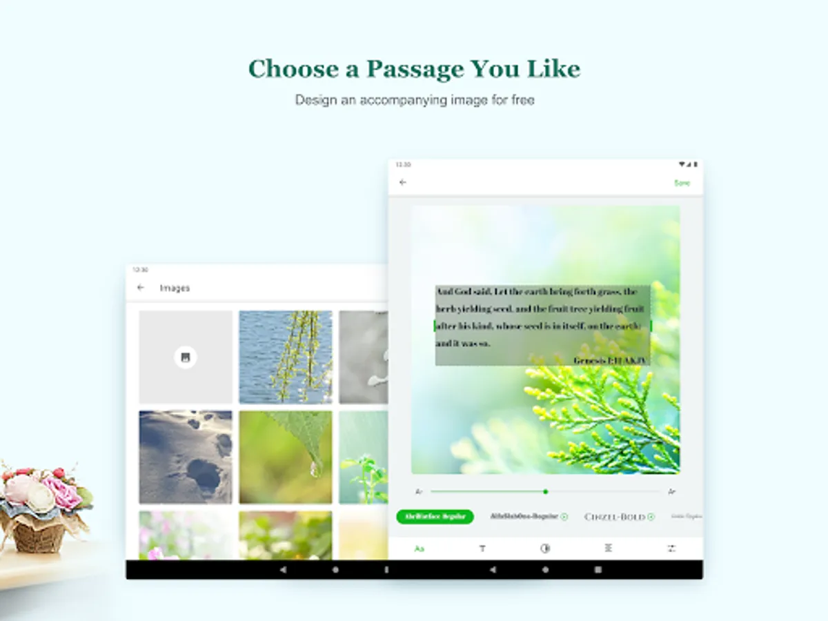 Custom images: A simple, easy way to create your own images, adding your favorite Bible verses.