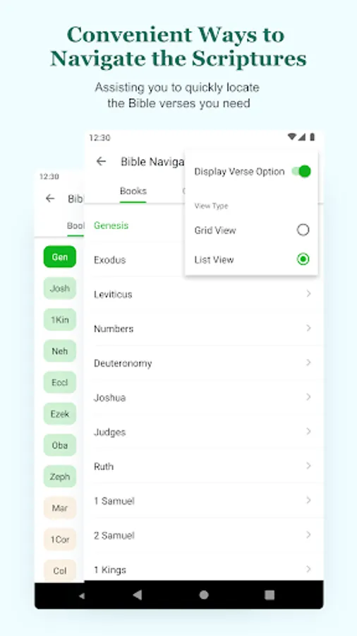 Scripture navigation: Provides convenient and flexible methods for navigating the Scriptures to help you more quickly locate the passages of the Bible you need to begin your journey of reading the Scriptures.