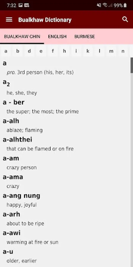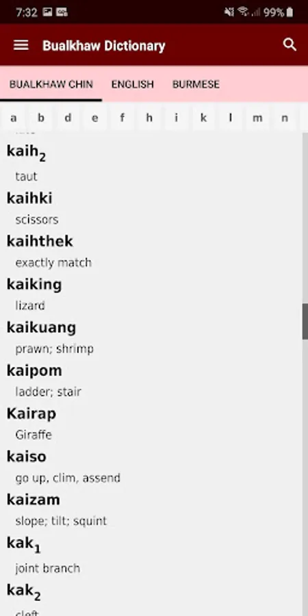 This app provides a dictionary for the Bualkhaw language. It is produced by Bibles International, the Bible society, translation and publishing department of Baptist Mid Missions.