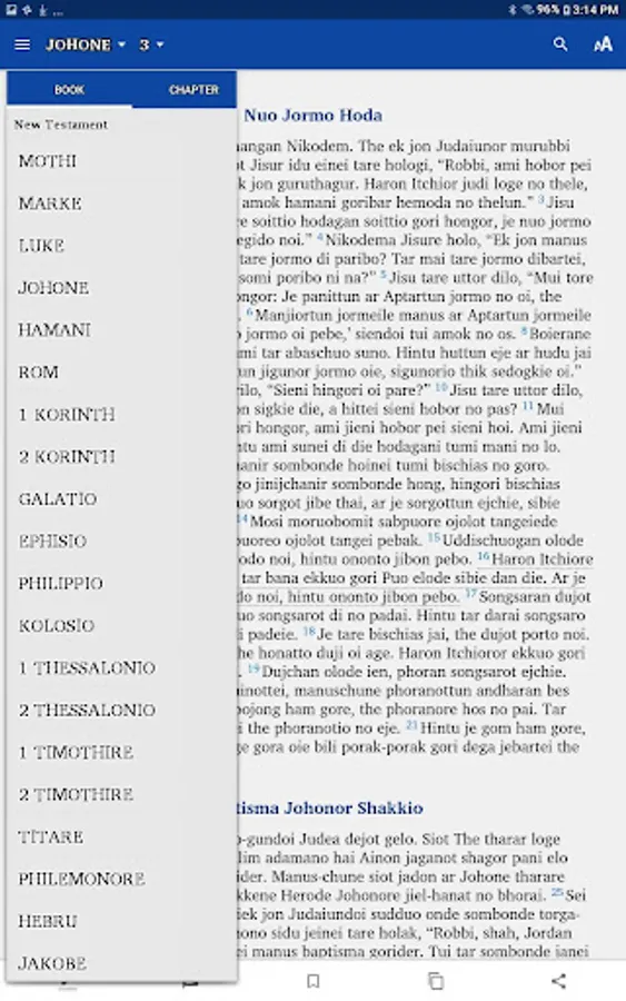 This app provides a translation of the New Testament into the Chakma language. It is produced by Bibles International, the Bible society, translation and publishing department of Baptist Mid Missions.