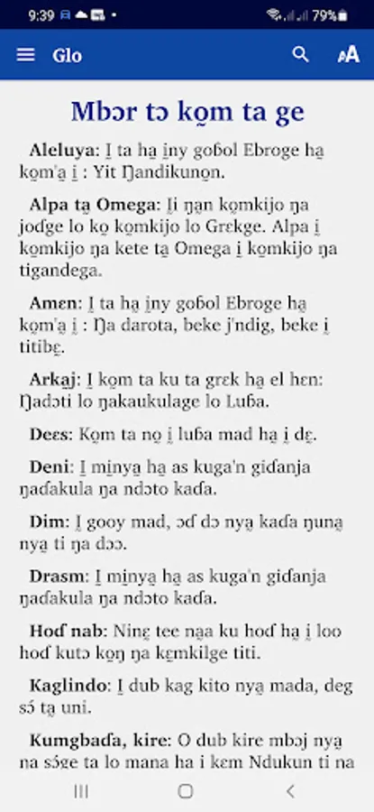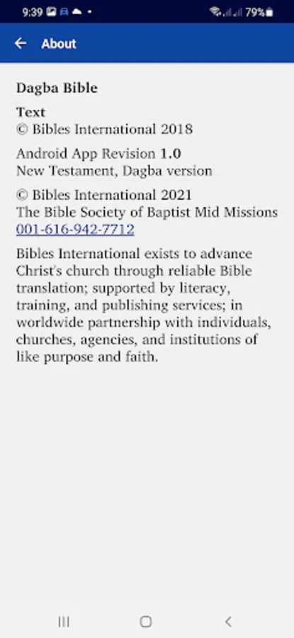 This app provides a translation of the New Testament into the Dagba language. It is produced by Bibles International, the Bible society, translation and publishing department of Baptist Mid Missions.