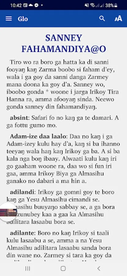 This app provides a translation of the Bible into the Zarma language. It is produced by Bibles International, the Bible society, translation and publishing department of Baptist Mid Missions. The New Testament is co-published with the United Bible Society, Abijan, Côte d’Ivoire (1977).