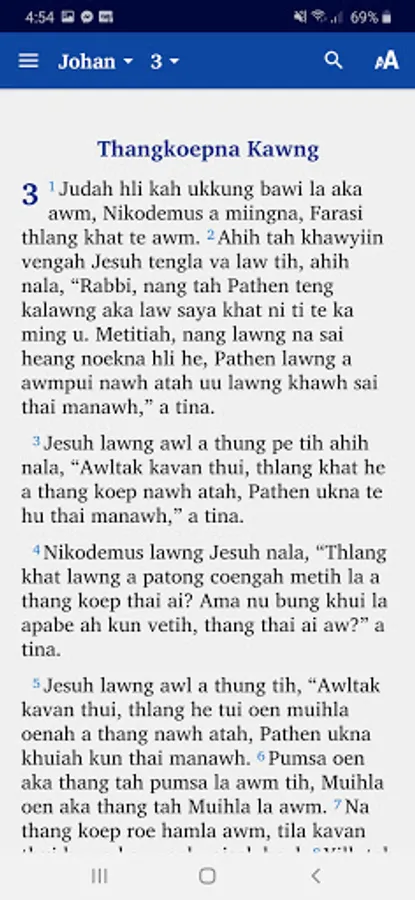 This app provides a translation of the New Testament into the Matu Chin language. It is produced by Bibles International, the Bible society, translation and publishing department of Baptist Mid Missions.