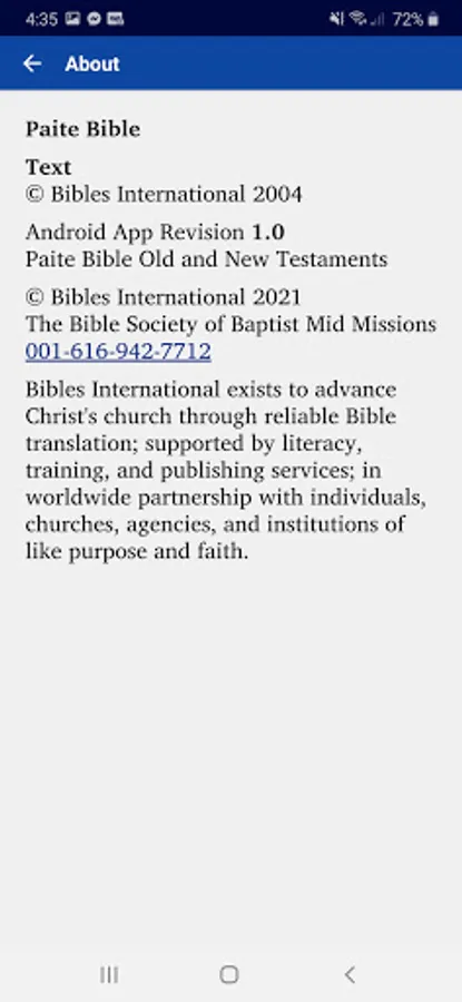 This app provides a translation of the Bible into the Paite language. It is produced by Bibles International, the Bible society, translation and publishing department of Baptist Mid Missions.