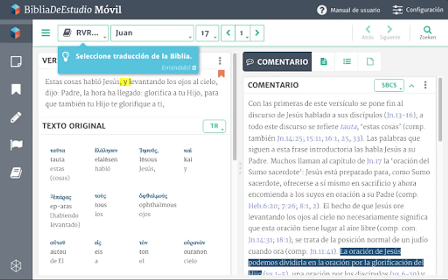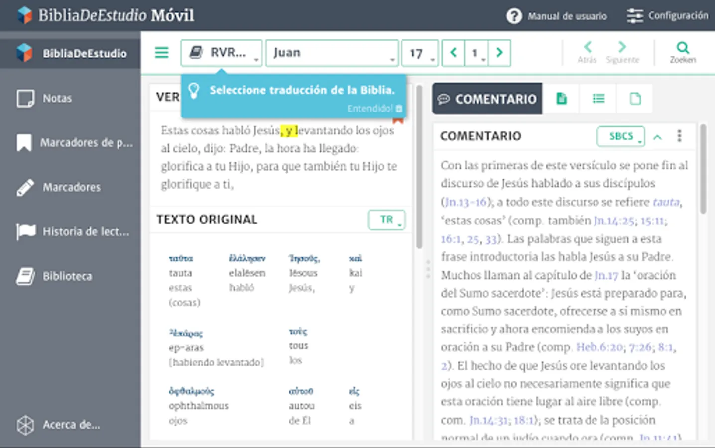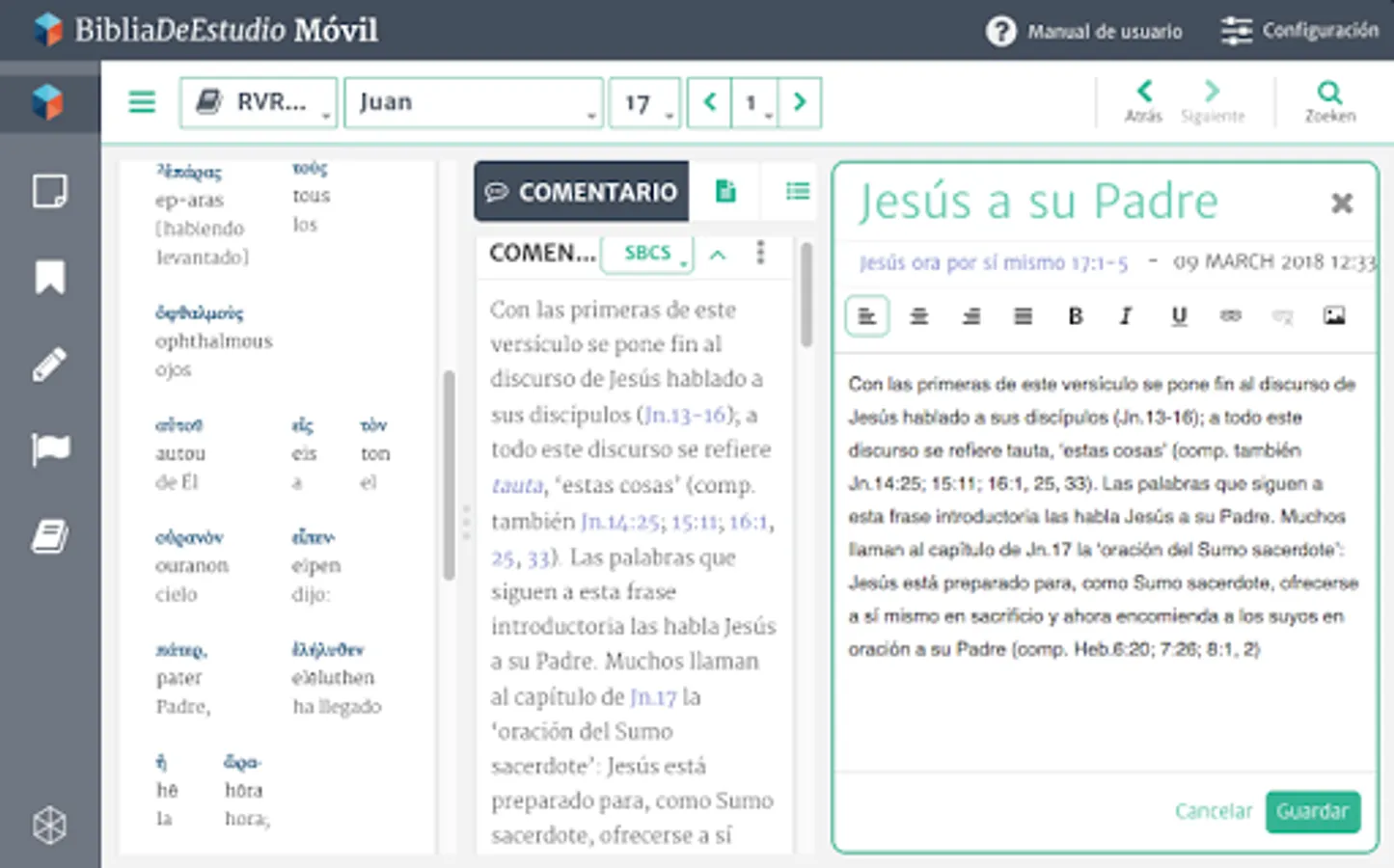 With a collective effort we have added all sorts of new features that provide practical solutions to the use of the application. You can use your account BibliaDeEstudio both online and on your mobile phone and can create notes, bookmarks and markers in the text easily. You can also check your reading history and thus continue their study time. We help you study the Bible with a series of practical tips and a user manual. From now you can also choose the font in the application, enlarge or decrease the font size and change the colors in the application. From this point you can use the Mobile Application BibliaDeEstudio anywhere without internet connection. With this new version of BibliaDeEstudio it is even easier to get more from the Bible!