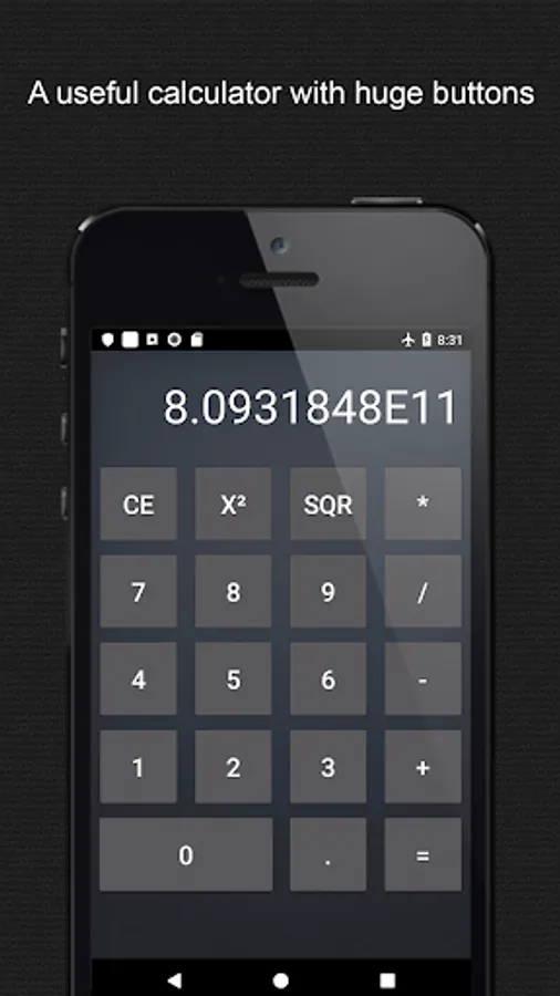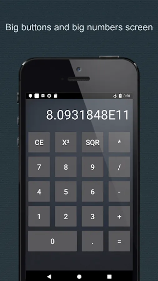 Big Numbers Calculator is a easy use calculator, suitable for all ages, with the great advantage of displaying a huge screen with big numbers and big buttons. It is able to perform the most common math operations: