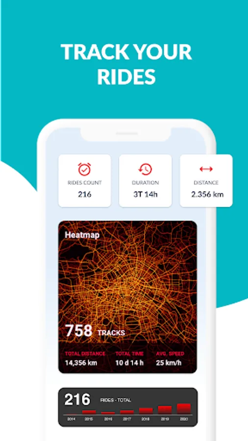 • Tracking of rides and visualisation in the overview and the personal heatmap in the profile