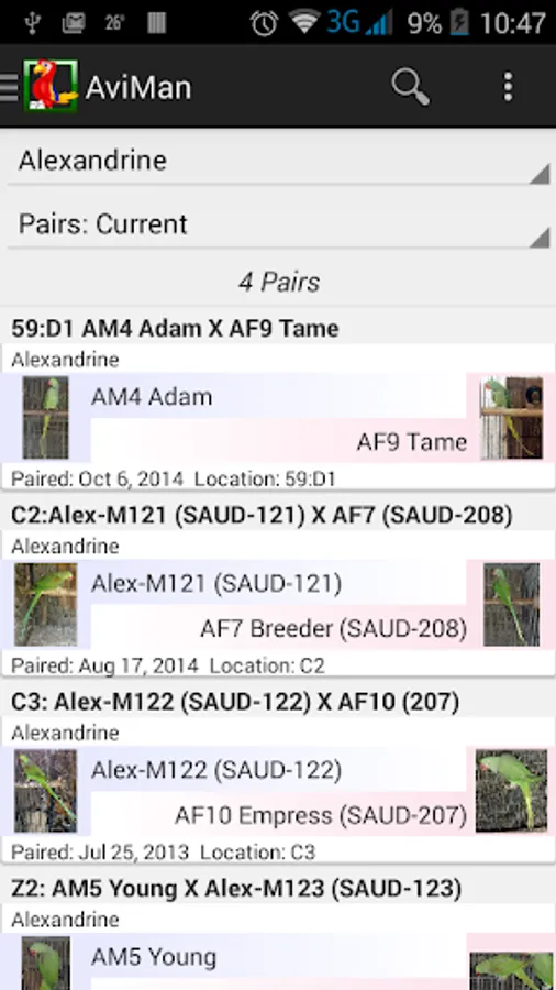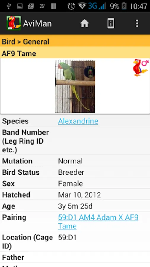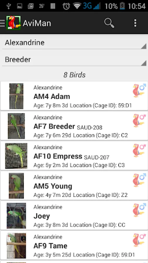 AviMan is an aviary management app useful for hobby bird keepers and professional aviculturists alike. Maintain breeding records, mutations, pedigree, pairings, clutches, & hatch dates. Keep notes, capture photos and maintain photo albums for each bird or pair, statistically detect breeding problems. Developed by an experienced aviculturist, AviMan is the first mobile app for aviary management.