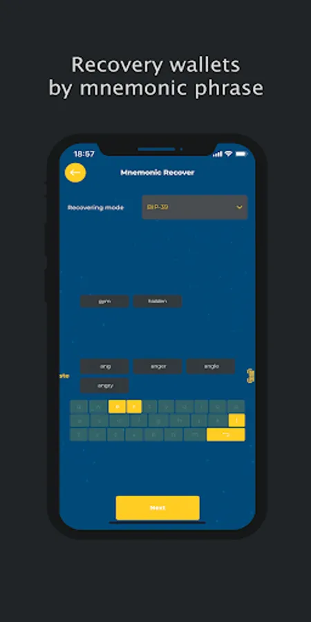 • Compatible with BIP39 mnemonic code for generating deterministic keys