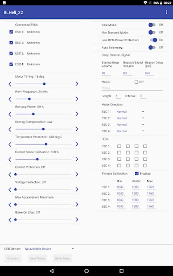- USB connected flight controller (FC) that supports BLHeli_32 passthrough