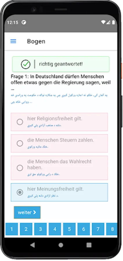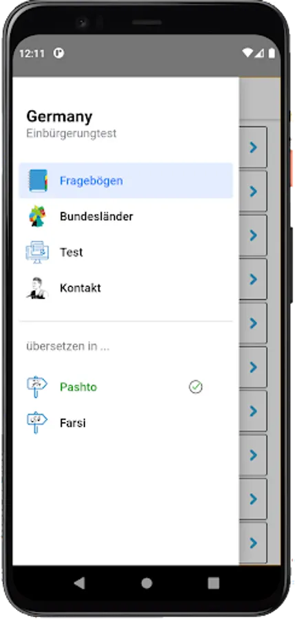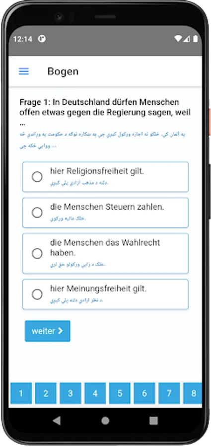 In this application you have the possibility to translate the German text with Pashto and Farsi as subtitles
