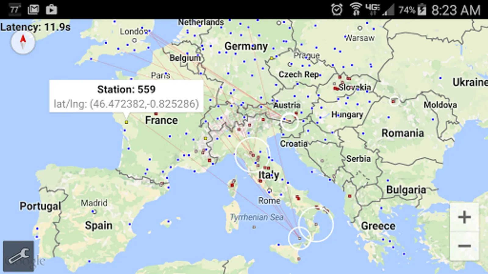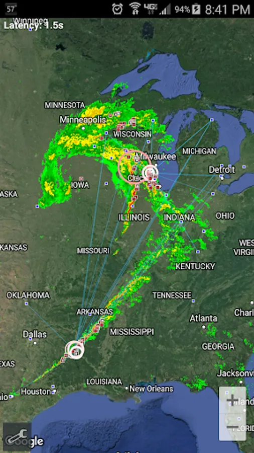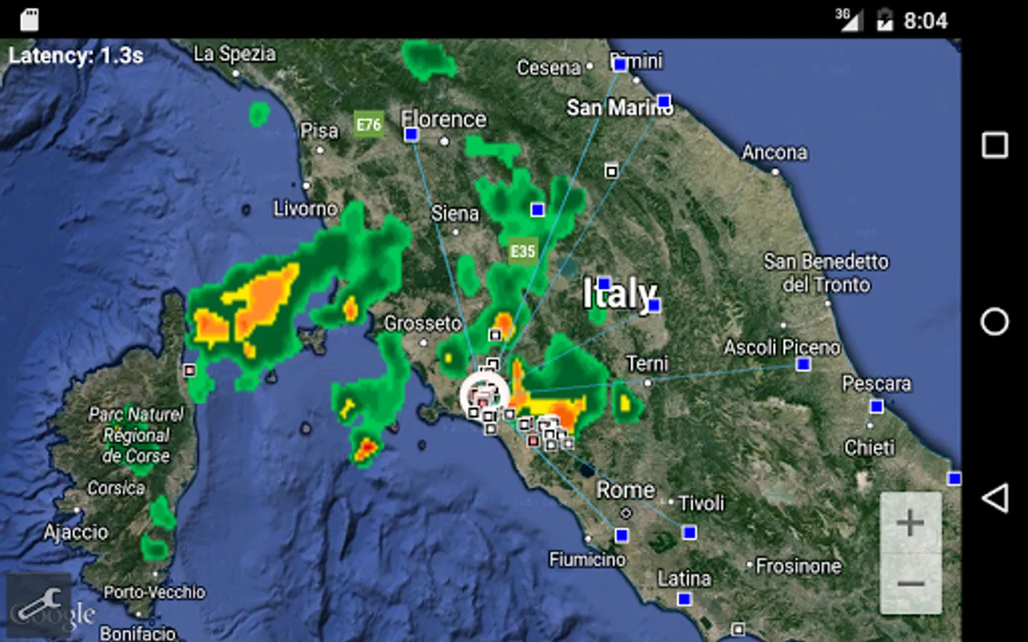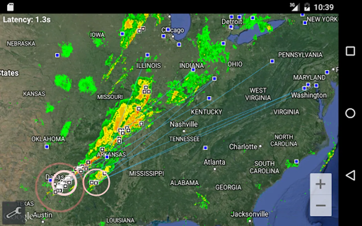 Utilizes the Blitzortung lightning network to display near-real time lightning strikes and radar from around the world.