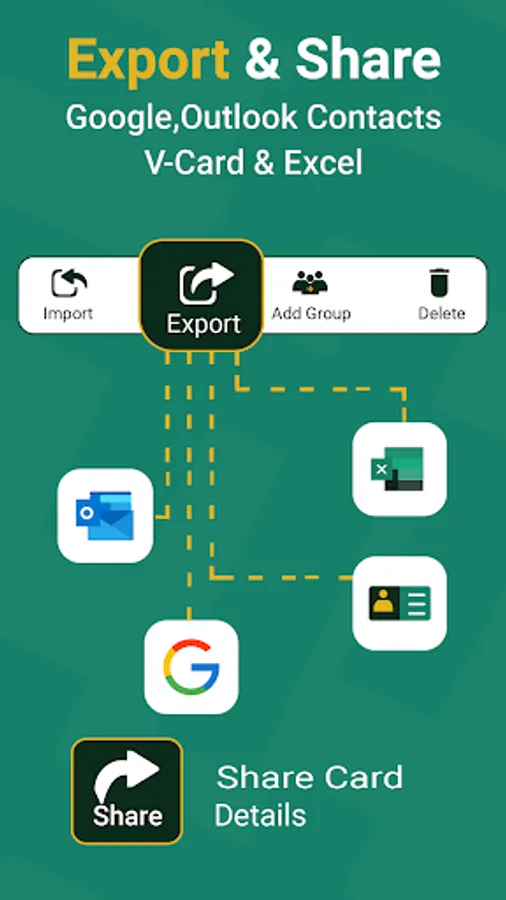 ✓Share your contact information via email, messaging, or any other app of your choice.