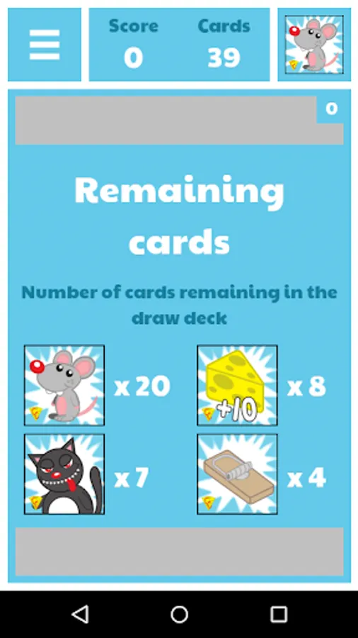 Cheese Chasers is a solitaire tile-placement game in which the player aims to get as many point as possible. The player places cards that are drawn in random order to the play area and he tries to surround cheese with his mice. But beware, cats and traps will be there to obstruct your quest for cheese.