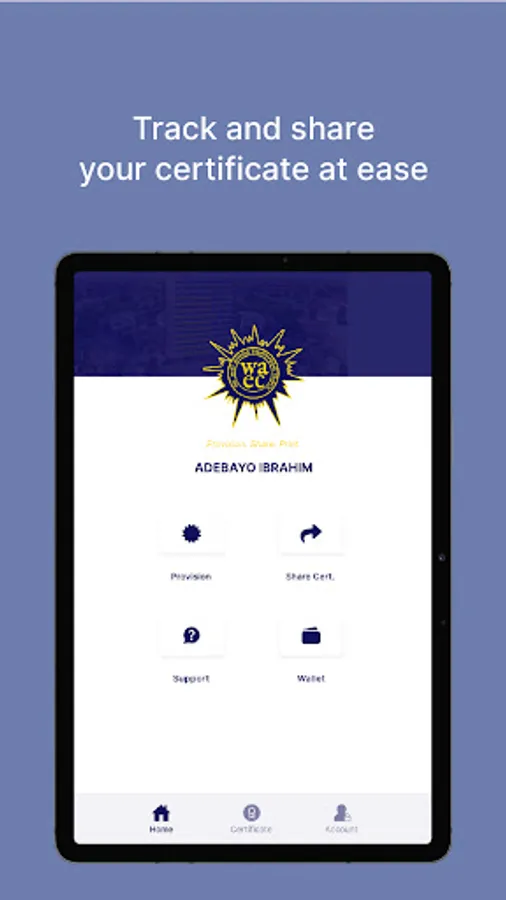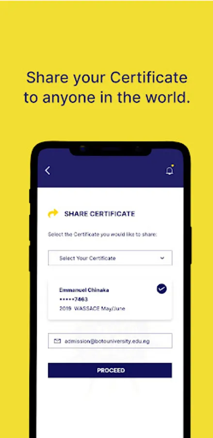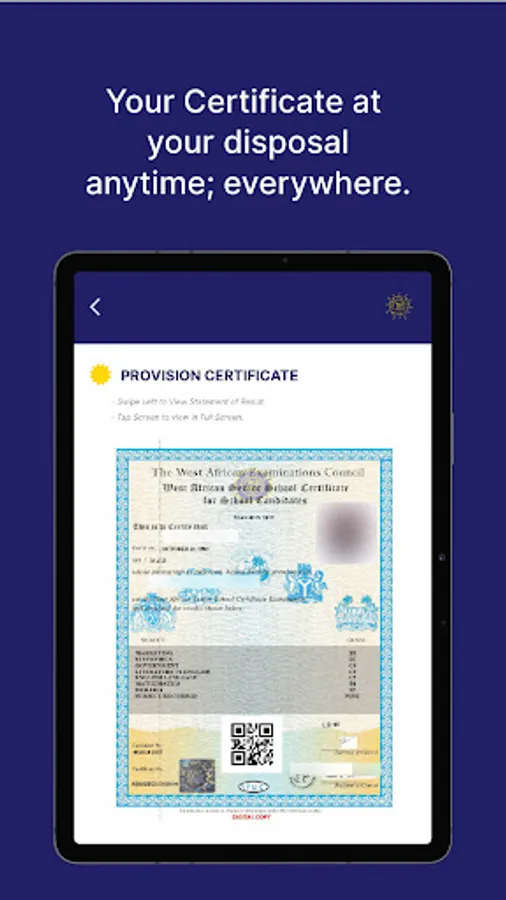 Access and share your WAEC certificate for confirmation from your portable and mobile devices.