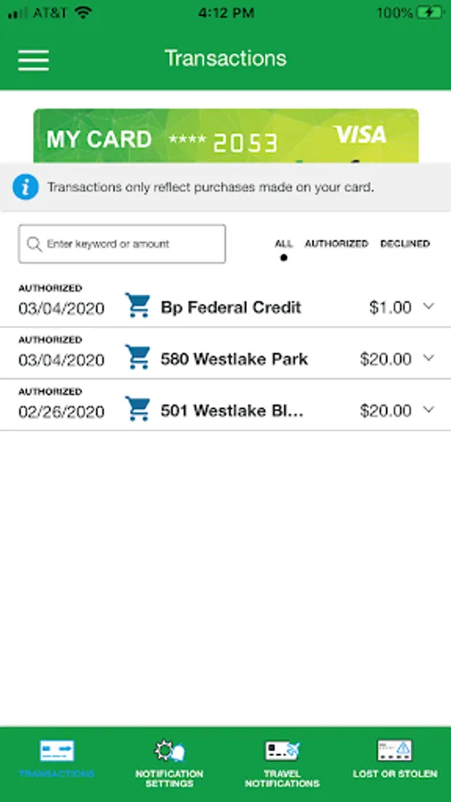 • View recent and pending transactions.