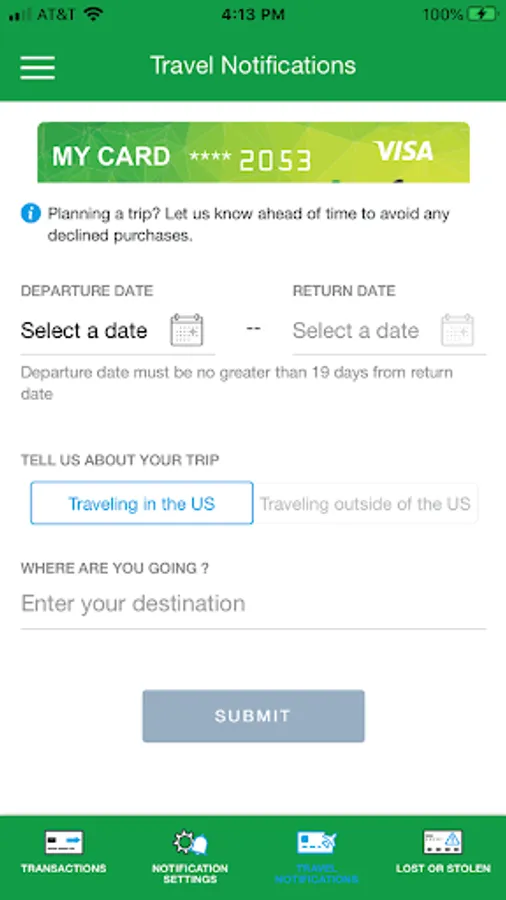 • Set travel notifications.