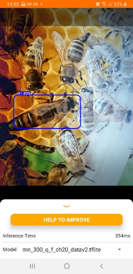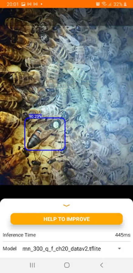 Use this application to find your bee queens in real time using your camera. Point a camera to the bees and you will automatically see a rectangle around the bee queen.
