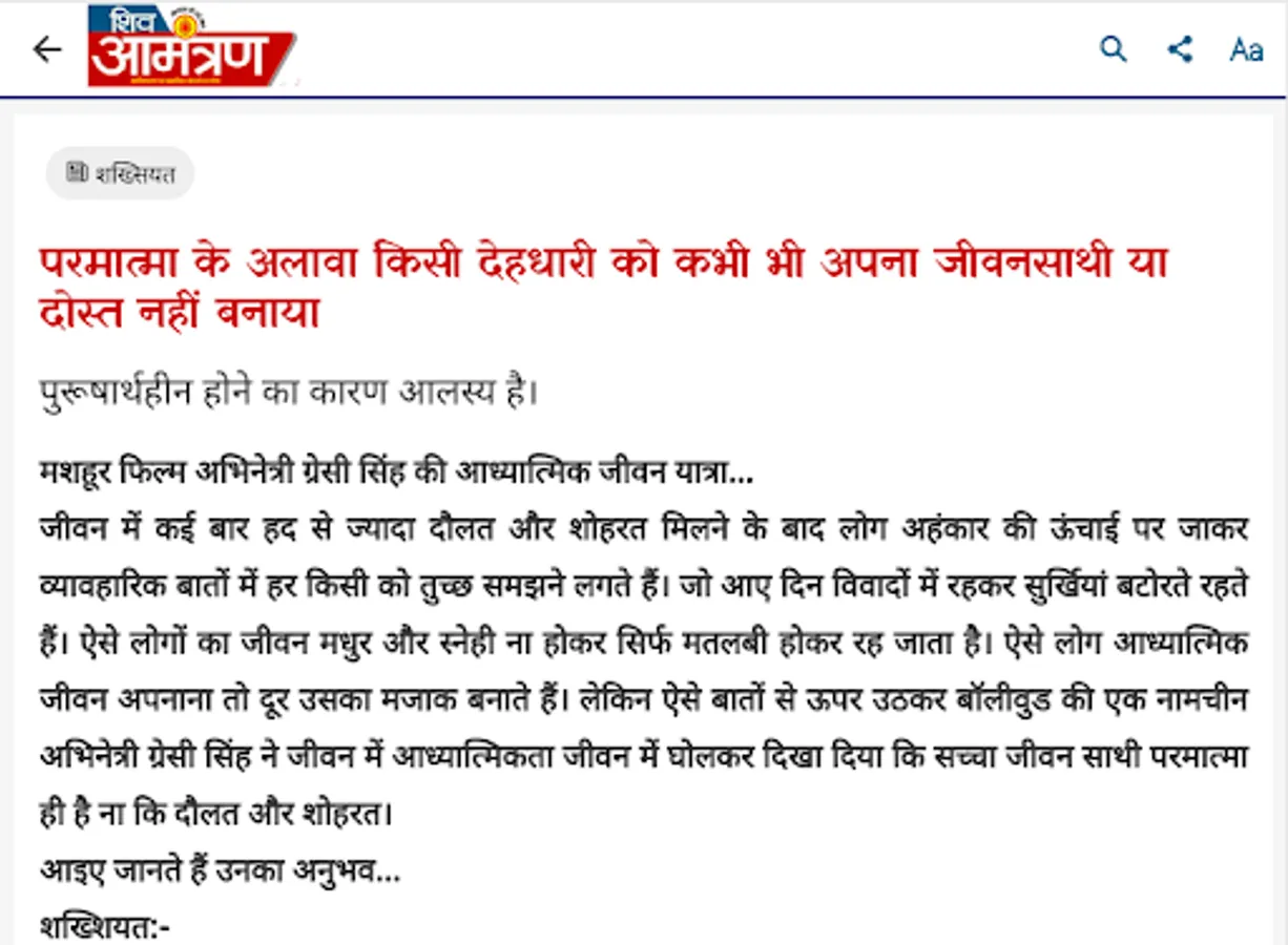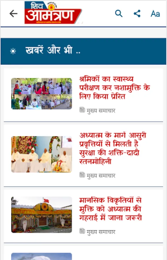 Get guidance on the path of peace and harmony through Shiv Amantran. This is a Hindi language journal published monthly directly from the headquarters of Brahama Kumaris. The journal is a blend of artful and intelligent coverage of spirituality and lifestyle and comprises articles, poems, service news, personal experiences, inspiration and blessings.