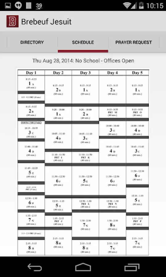 • The Brebeuf Schedule - The class day for today and period schedule are together in one place.